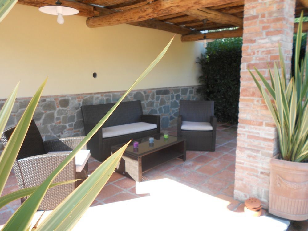 Nice, carefully with original materials restored farmhouse in the softly eastern hillside (120 m. above sea level) of Lucca. The house has been transformed into three independent apartments, each with own entrance. Wonderful spot for making long walks or bike excursions in the green country and hillside, to reach easily the Tuscany art towns or to taste the typical food. Pool, purified with salt (12 x 6 m, deep 150 cm, open 01.05-30.09) with Gazebo, table, chairs & deckchairs and beach umbrella shared between all clients and sometimes the owner who lives in a house nearby. Behind the houses, shadow lawn for the use of clients.