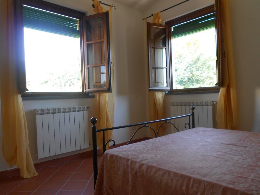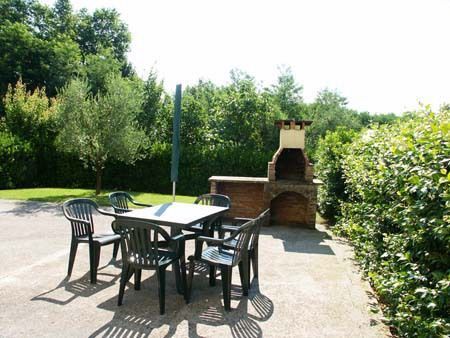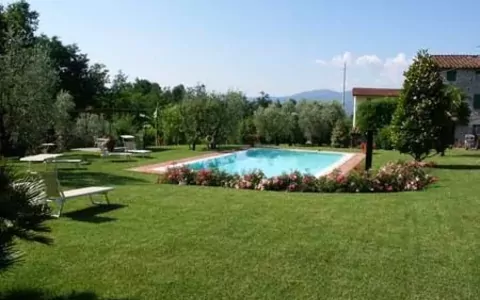 Nice, carefully with original materials restored farmhouse in the softly eastern hillside (120 m. above sea level) of Lucca. The house has been transformed into three independent apartments, each with own entrance. Wonderful spot for making long walks or bike excursions in the green country and hillside, to reach easily the Tuscany art towns or to taste the typical food. Pool, purified with salt (12 x 6 m, deep 150 cm, open 01.05-30.09) with Gazebo, table, chairs & deckchairs and beach umbrella shared between all clients and sometimes the owner who lives in a house nearby. Behind the houses, shadow lawn for the use of clients.