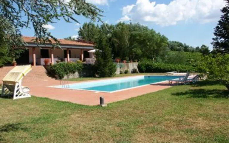 Apartment in a lovely villa in the Pisan hills (140 m. above sea level) surrounded by 10.000 m² of cultivated land. Enclosed external area with swimming pool (15 x 7,5 m., 2.5/1.2 deep, open 01.05-30.09) for the exclusive use of the guests with deckchairs and barbecue. Lovely panorama of the hills and tranquillity. The owner and his wife live in the apartment next door.