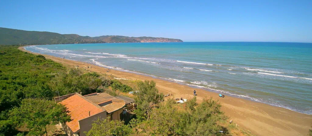 As a slightly wider road in the sea that connects the Monte Argentario peninsula with the lowlands in Orbetello. The sandy beach is 7km long, the bay suitable on the other side as well, welcome for water sports. To recommend a sailing trip to Monte Argentario with its steep rocky shores and romantic coves.