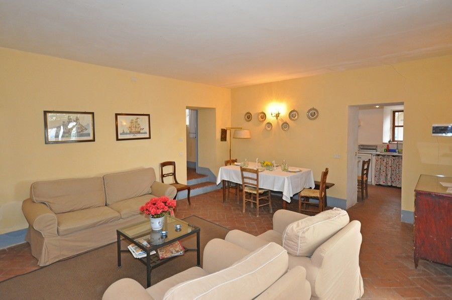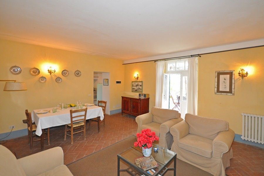 Ground floor: living-room with dining area, kitchen (oven, dishwasher, microwaves, toaster, American coffee maker), double bedroom with ensuite bathroom with bathtub (the bathroom is accessible going down 2 steps).