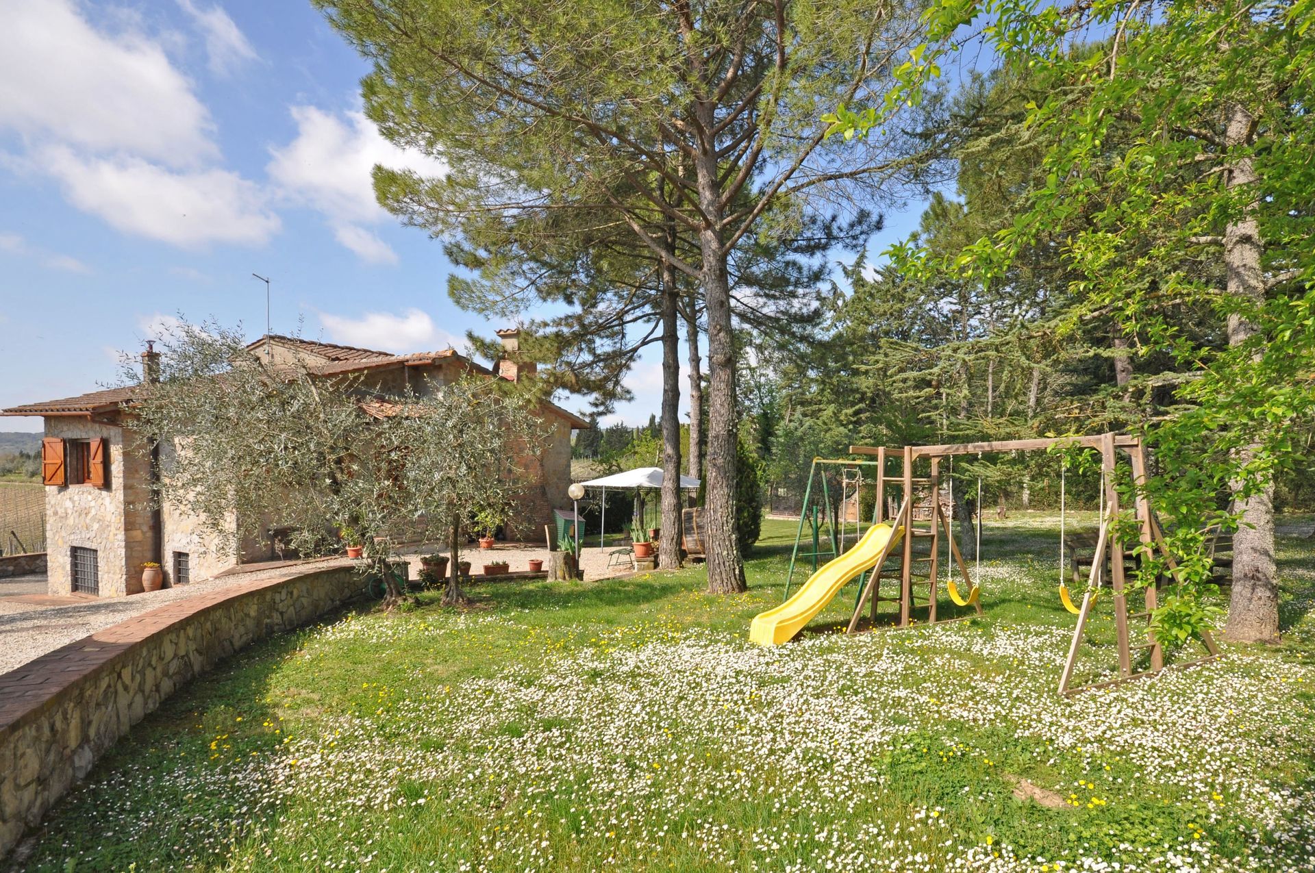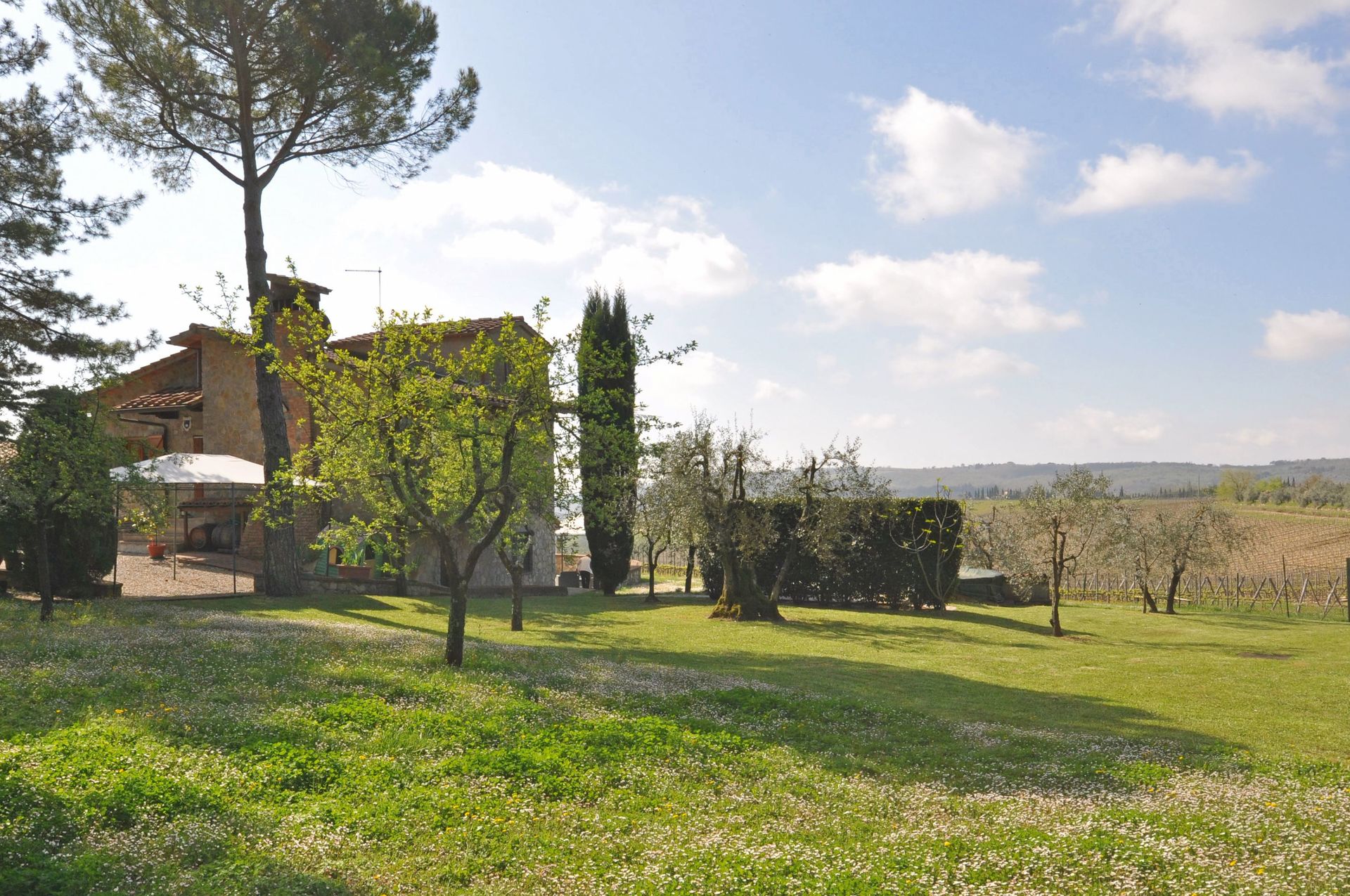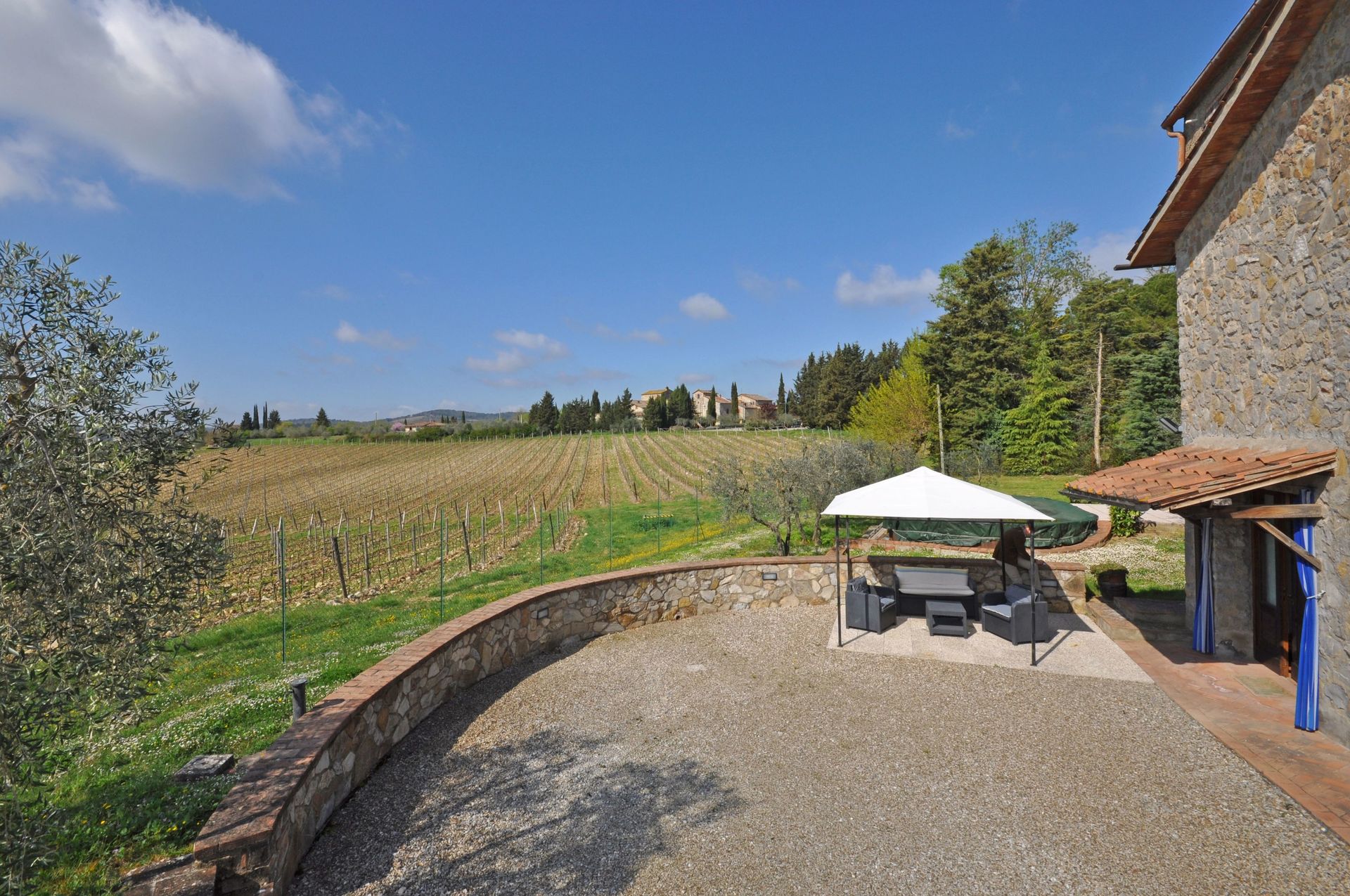 Afstande: den lille by San Sano (købmand og restaurant) ca. 500 meter, Gaiole in Chianti (butikker af alle slags) 10 km, Siena 25 km, Rapolano Terme (berømte termiske bade) 35 km, San Gimignano 55 km, Volterra 65 km, Firenze 65 km, Montalcino 65 km, Arezzo 70 km, Montepulciano 70 km, Pienza 75 km.