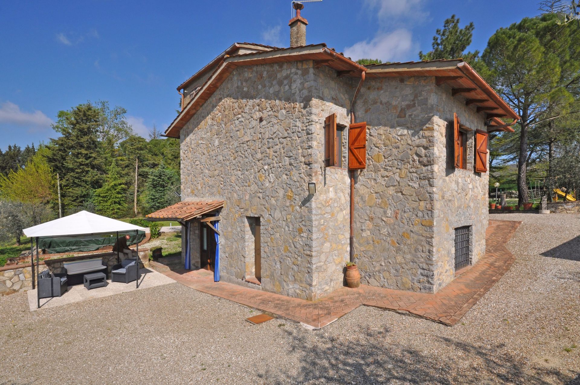 Fritliggende hus med privat pool i Chianti Classico vinregionen i Toscana. Huset ligger i en gammel landsby omgivet af vinmarker, olivenlunde og skove. Byen Gaiole in Chianti ligger kun 10 km væk, og de andre landsbyer Chianti Classico (Radda, Castellina, Greve osv.) Er let tilgængelige med bil. Huset er komfortabelt og strækker sig over to niveauer (forbundet indvendigt via en vindeltrappe) og tilbyder gæsterne en rummelig, velplejet have med pool (delvis over jorden). Huset har en fantastisk beliggenhed for at besøge Chianti-området og de mest berømte steder i Toscana. I nærheden ligger mange berømte vinmarker, hvor det er muligt at smage på de vine, der har gjort dette område i Toscana så verdensberømt. Parkering på ejendommen.