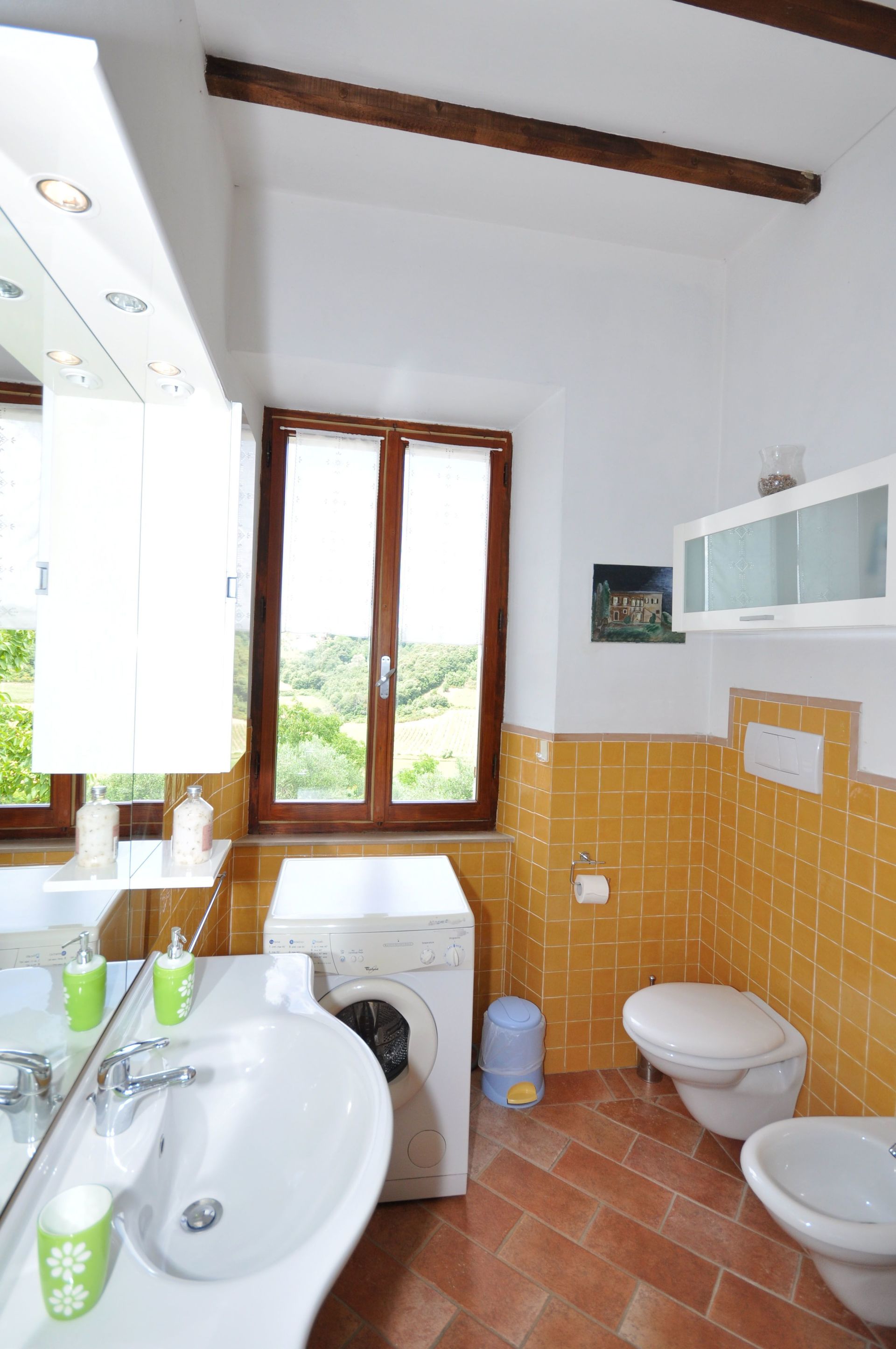 At guests’ disposal: large, panoramic garden overlooking cultivated fields and woods, area with swimming-pool (14 x 7 m – min. depth 1 m – max. depth 2,5 m – open from 15/05 through 15/10), 7-seat Jacuzzi (available and heated from 15/5 through 15/10), barbecue, bikes.