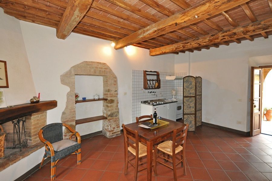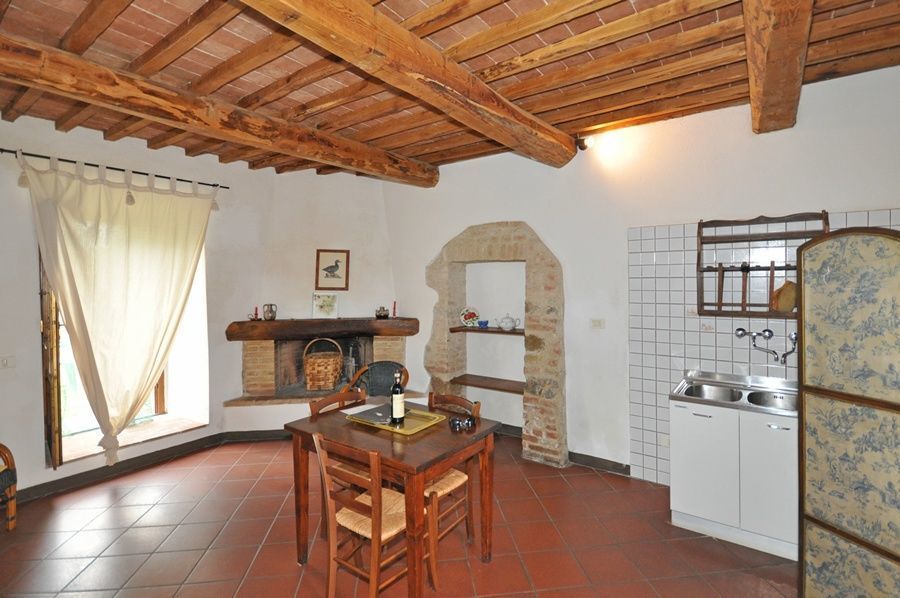 Ground floor: living-room with fireplace, dining area and kitchen corner (oven), double bedroom, bathroom with shower.