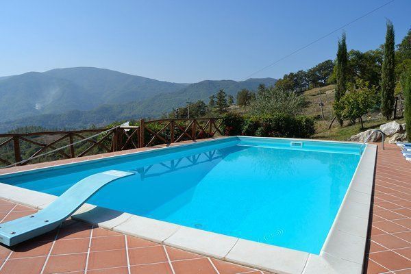 Swimming pool heated (mt. 5x10, from 1,10 to 2,30 mt. deep, open from May to half October), looking over the landscape around with a wonderful panorama.