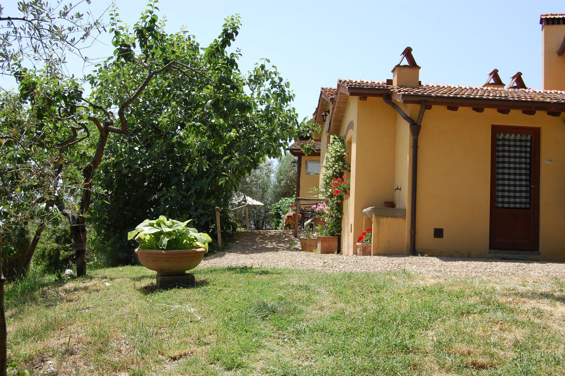 Private outdoor area with table and chairs.