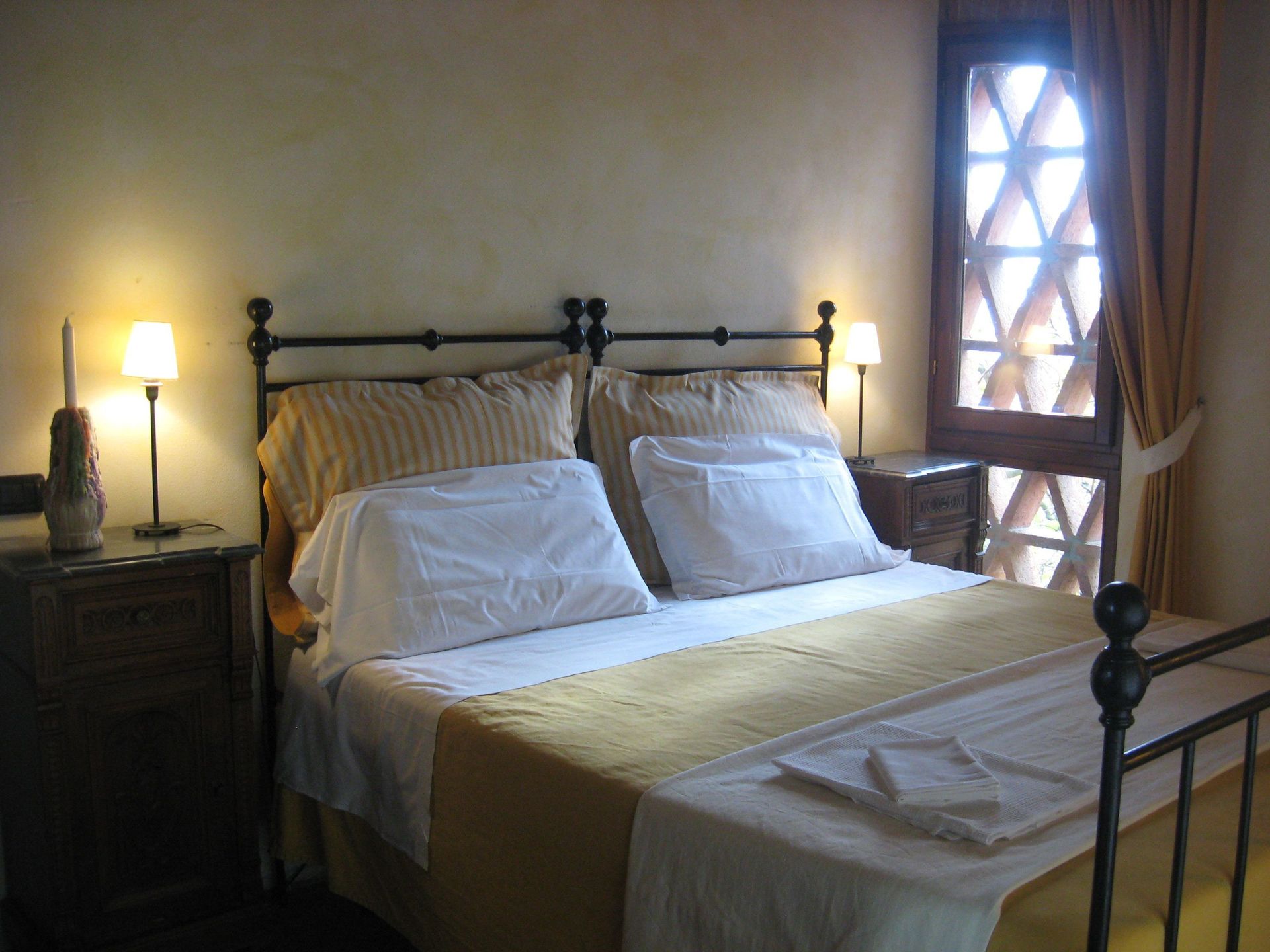 Double bedroom with air conditioning, bathroom with shower.