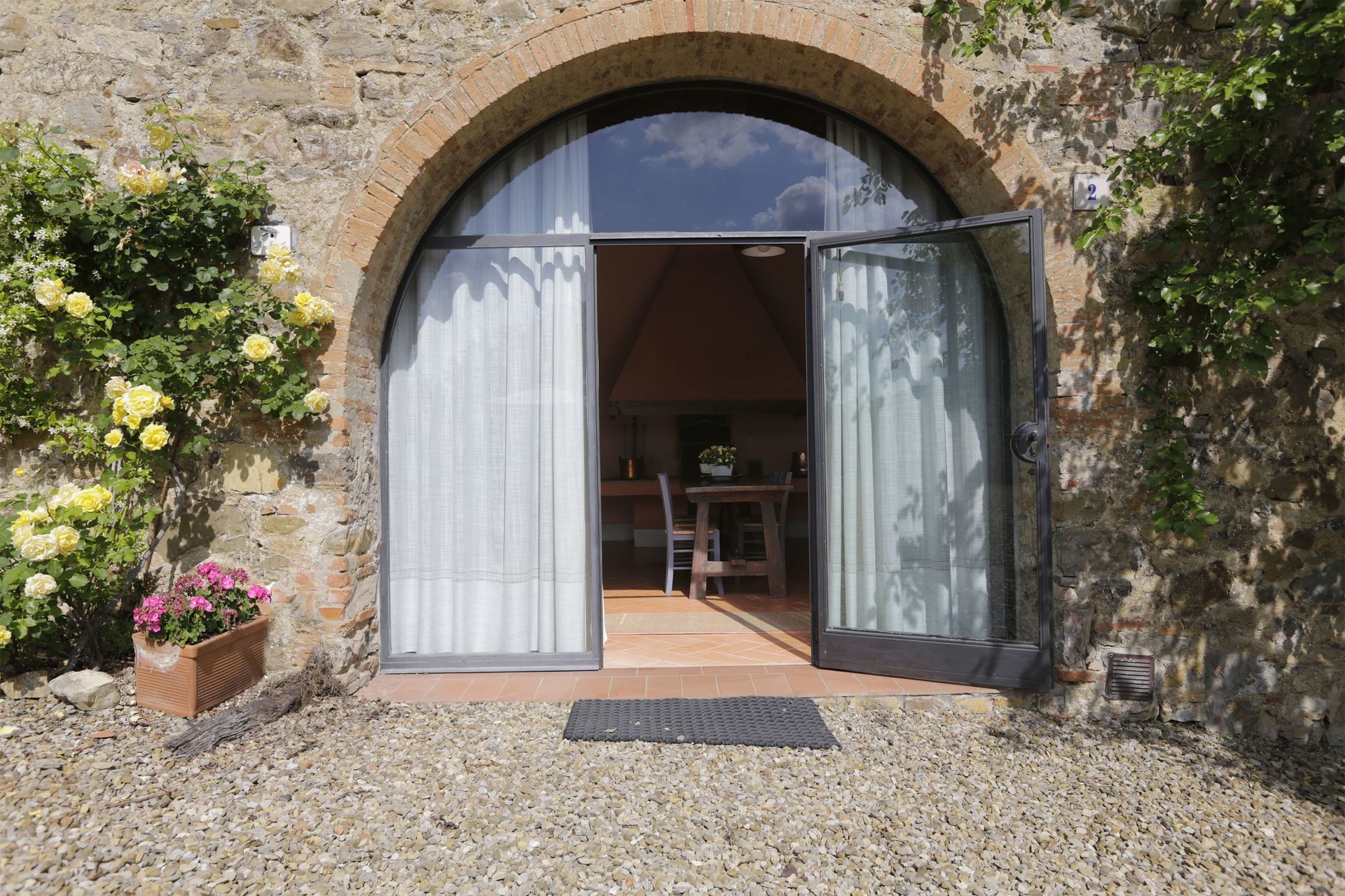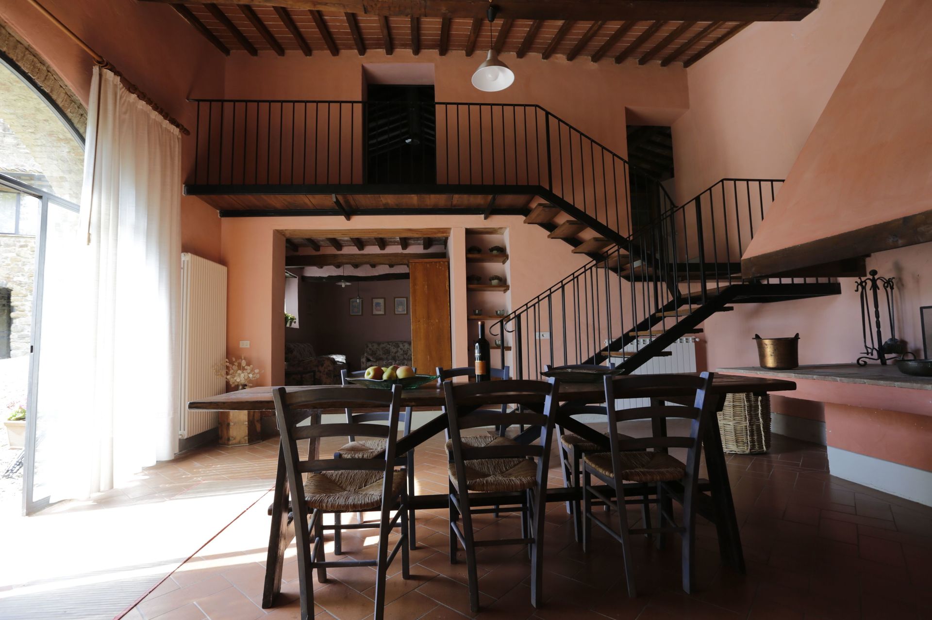 Il Fienile is indipendent villa ( 110 sqm )The entrance brings you into a large room with a high ceiling with wooden beams. At one end of this room there is a large typical Tuscan fireplace. In the room there is a wonderful wooden table for indoor meals.
