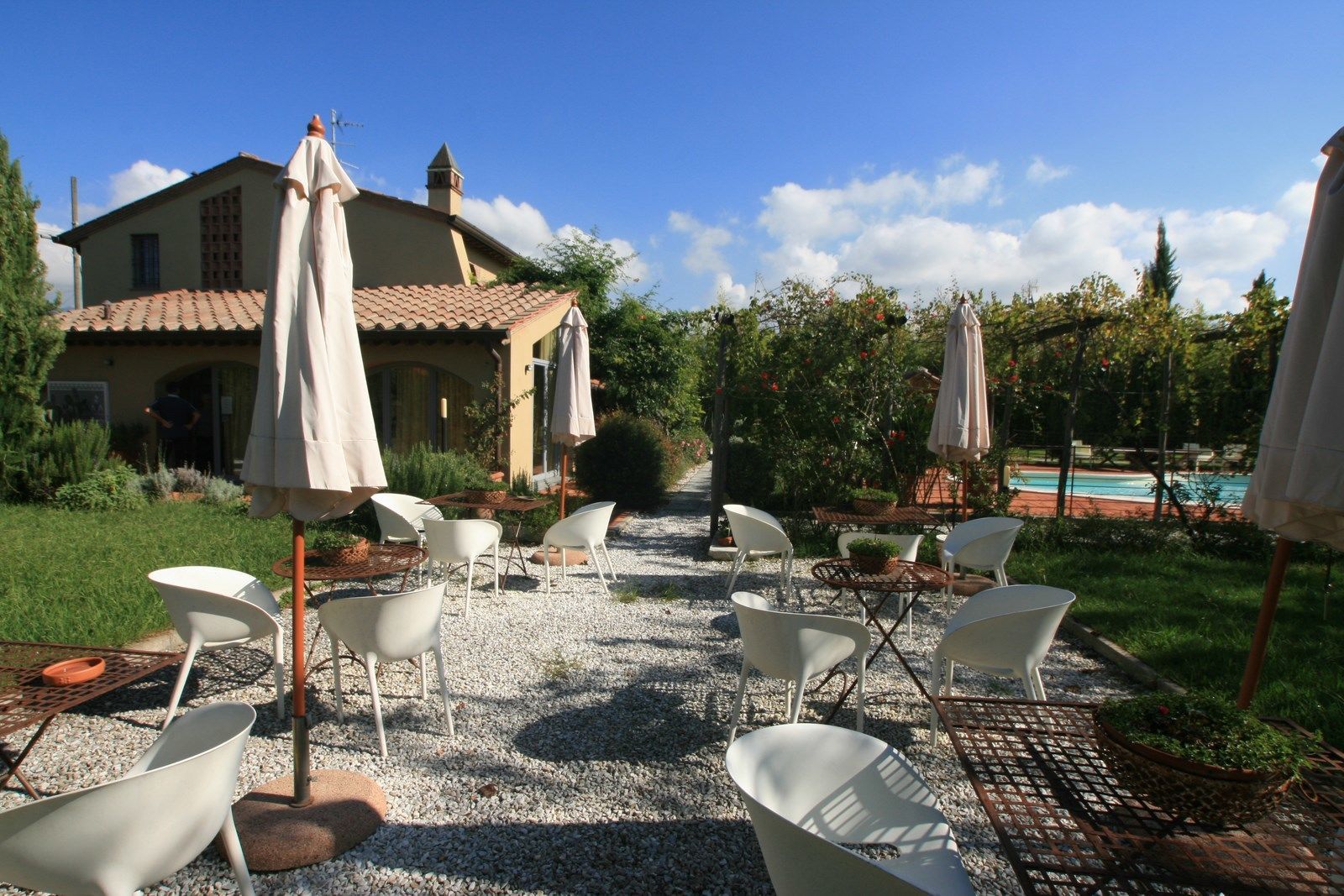 This apartment has a private, covered veranda equipped with a table and chairs. It has a small entrance which leads into a sitting room with a kitchenette, one double bedroom and a fully furnished bathroom including a hairdryer. The house has all the modern comforts including heating, air conditioning and a TV.