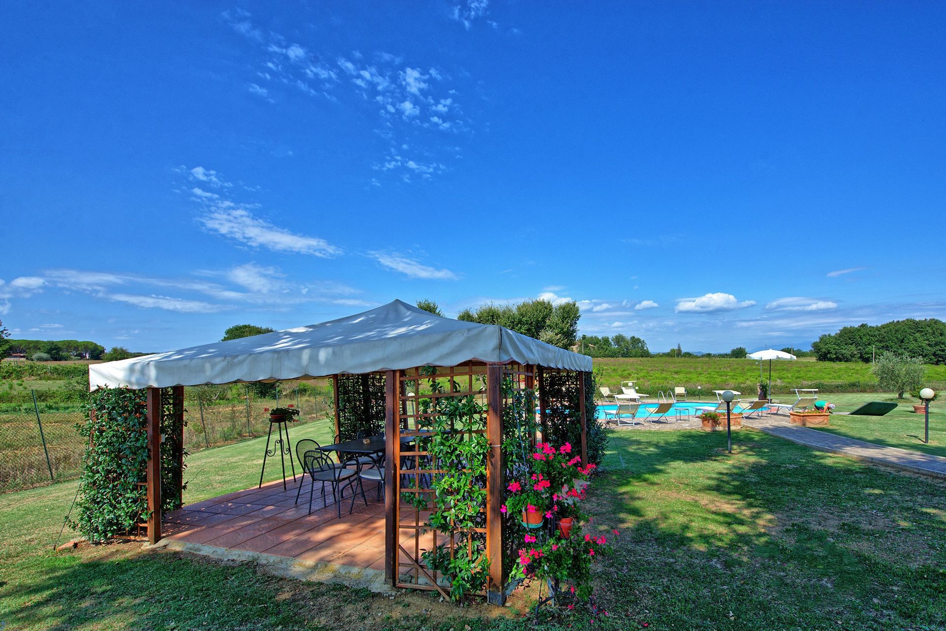 Villaen er privat og indrettet i traditionel rustik toscansk stil. Udenfor er der en privat have og en privat swimmingpool. Ankomst til ejendommen sker via en 300 m velholdt grusvej. Ved siden af ejendommen er der en landingsbane til ultralette fly. Efter anmodning kan gæsterne opleve den unikke følelse af en flyvning over det omkringliggende landskab.