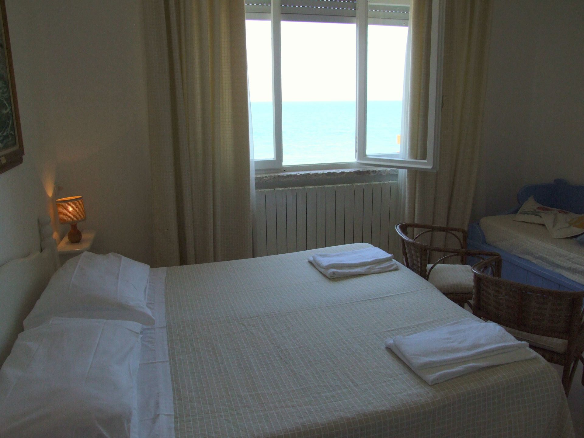 The apartment was right on the beach overlooking the water with large windows in every room and a balcony. The owner's helpfullness and hospitality exceeded our expectations as did the apartment.