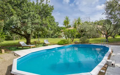 Modern villa "San Bartolo", detached, renovated, surrounded by trees and fields. 2 km from the centre of San Vincenzo, in a sunny position, 2 km from the sea. Private: garden 2'500 m2 (fenced), natural garden, lawn for sunbathing, swimming pool (above ground) (8 x 4 m, depth 120 cm, 28.05.-30.09.). Pergola, garden furniture, barbecue. In the house: internet access, washing machine. Parking (for 2 cars). Grocery 2 km, supermarket 1.5 km, restaurant 1 km, railway station "San Vincenzo" 2.8 km, sandy beach 2 km, thermal baths "Calidario" 8 km. Marina 2 km. Nearby attractions: Baratti, Populonia, Bolgheri. Please note: main road 100 m from the property.