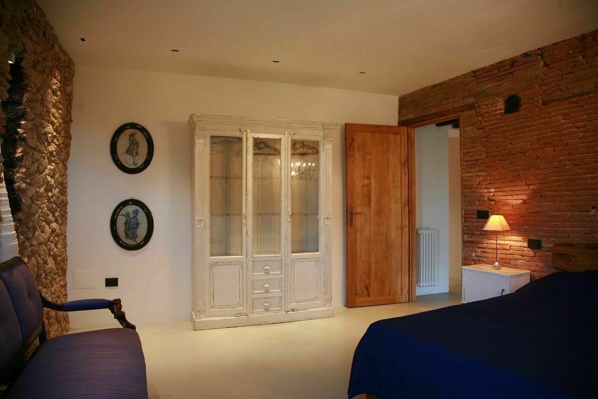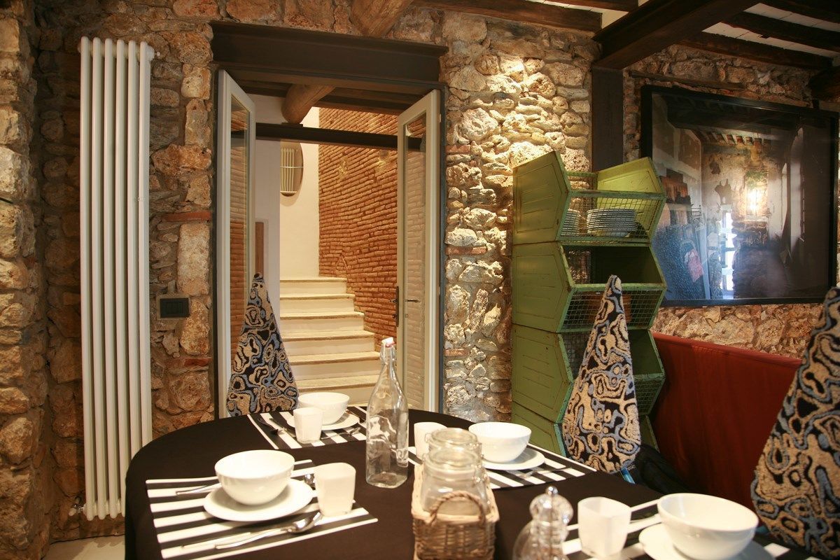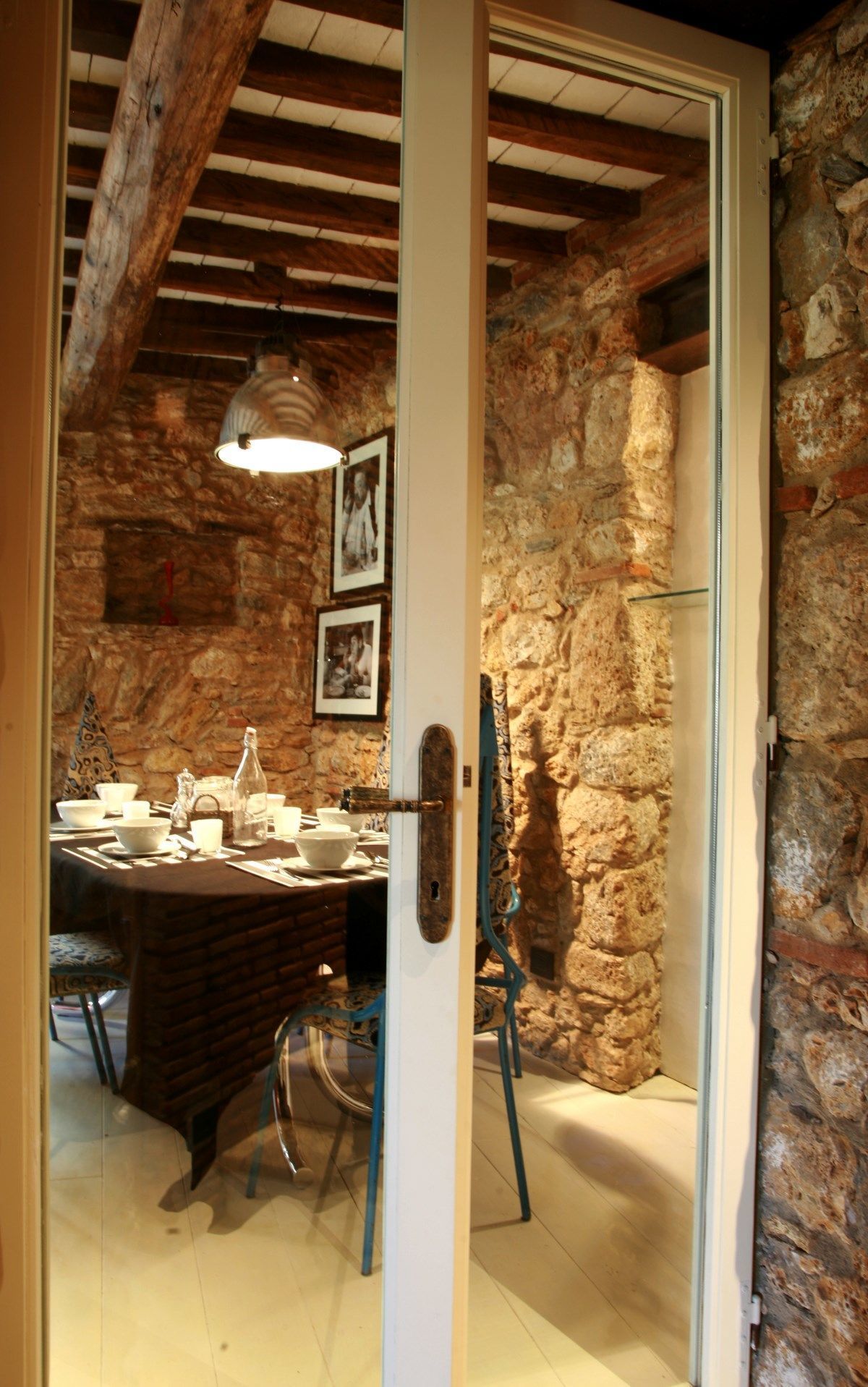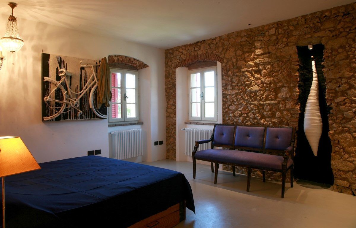 The interior is unique with all its exposed stone and original materials mixed with all the marvelous works of art that have been added with taste.
